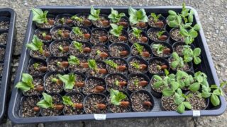 ソラマメ40粒の育苗結果や発芽率、根の状態を見て11月に定植した様子を紹介。ウスイエンドウの栽培方法やスナップエンドウの播き直し状況もまとめています。