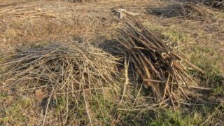 果樹園づくりに向けた開拓9日目。腕の太さ以下の枝をハンディーチェーンソーで1mに玉切りしましたが、まさかの不具合が発生。実際の使用感と作業の進み具合を正直レビューします。