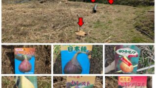 耕作放棄地にキウイとイチジクを定植した実践記録。根だらけの土での植え穴の掘り方、苗の植え付け方法、防草対策としての段ボールマルチなどを初心者向けに詳しく解説します。