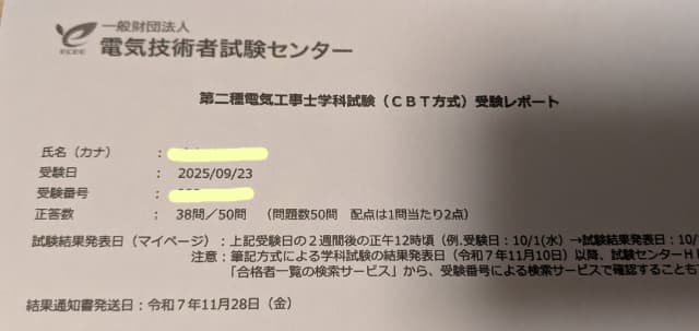 試験の部屋を出て受付に行くと、受験レポートを渡されました。