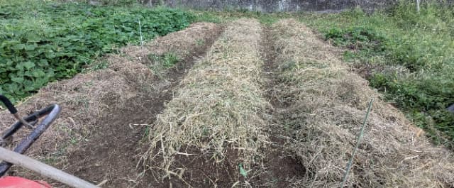 この畝には、11月ごろに ソラマメと玉ねぎを定植予定。