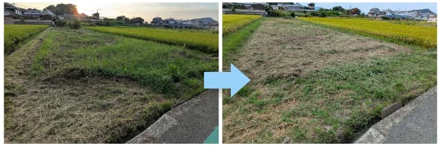 こんな感じできれいさっぱり、見渡すと景色も明るくなり、ずいぶん田んぼらしい姿に戻りました。