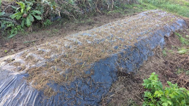 今回植えた畝は、夏から仕込んでいた 菌ちゃん畝。