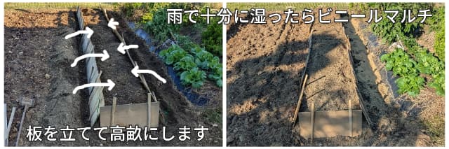そして仕上げは高さ45cmの板を立てて土を盛り上げる作業。
