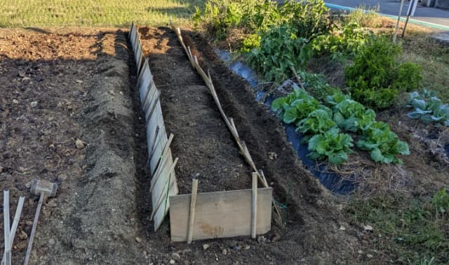 そして仕上げは高さ45cmの板を立てて土を盛り上げる作業。