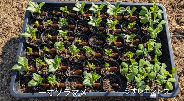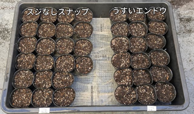 ウスイエンドウは昨年の自家採種ですが、発芽率が良いのでこちらも多めに準備。
