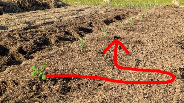 サツマイモを植えていた跡地に畝を作って定植しました。