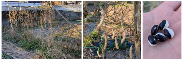 植え付け時期が合わなかったのか収穫までは至りませんでしたが、さやの中に少しだけ実が入っていました。