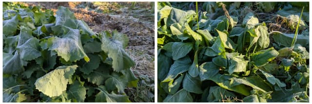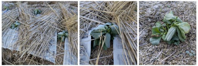 霜が降りた畑の野菜たち