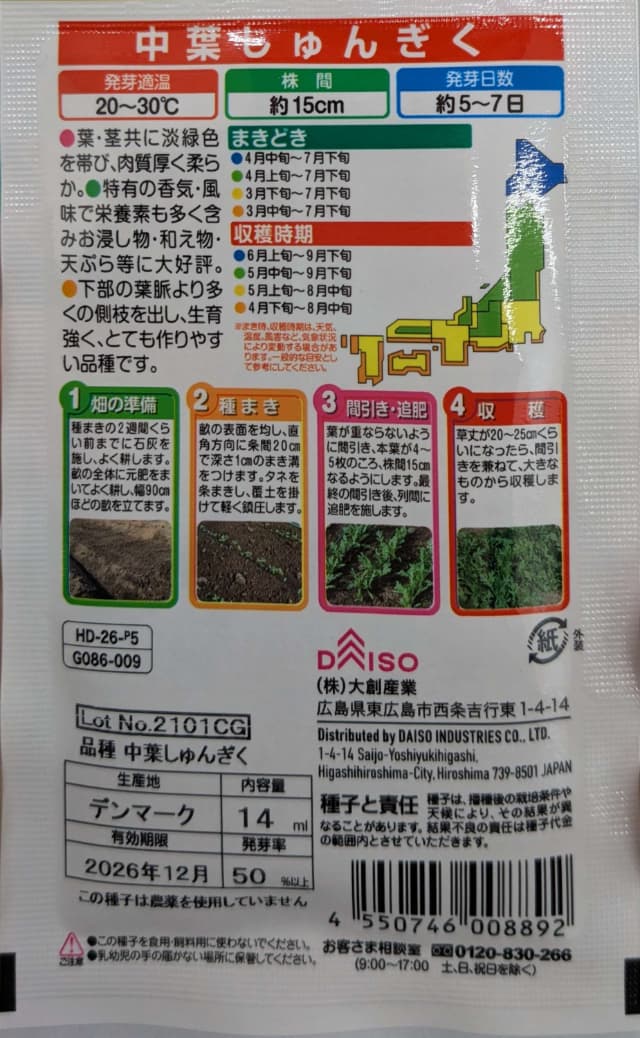 この記事では、実際に店舗で確認した2026年春のダイソー種袋を、