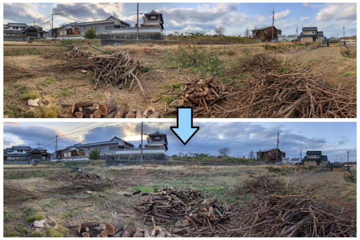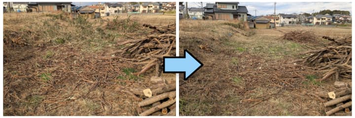 前回までの作業では、敷地内に生えていた雑木や篠竹の伐採を行いました。