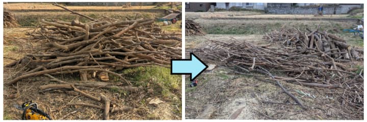 • 生の枝 → 1m程度に切って地面に放置