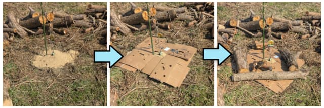 防草のためのマルチンング|もみ殻+段ボールマルチ