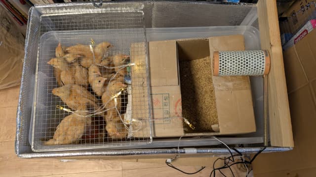 1か月を目安に鶏小屋へ移す予定なので、育雛ケース生活もあと少し。